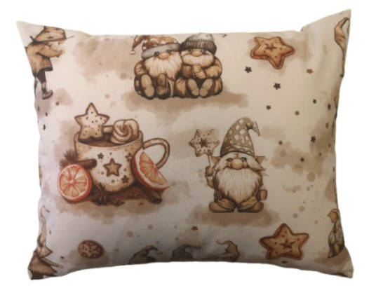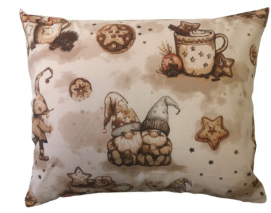 Karácsonyi kispárna huzat barna manók mézeskaláccsal 40x50