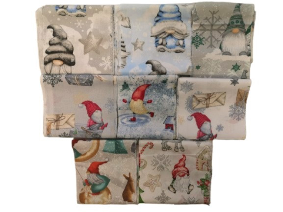 Karácsonyi mikulás, manó mintás pamutvászon patchwork csomag - 2 kg