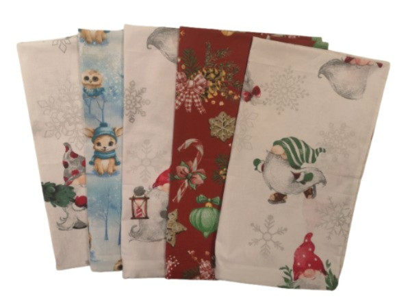 Karácsonyi pamut kispárna huzat csomag 5 db-os, II. osztályú , kék, fehér, piros színek változó minták