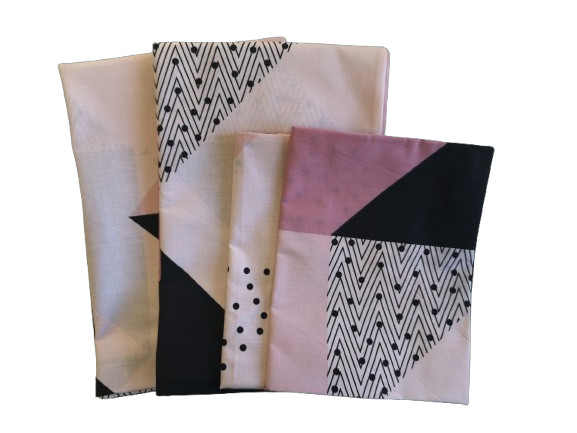 Mályva - fekete pöttyös - csíkos modern mintás 4 darabos párna huzat szett