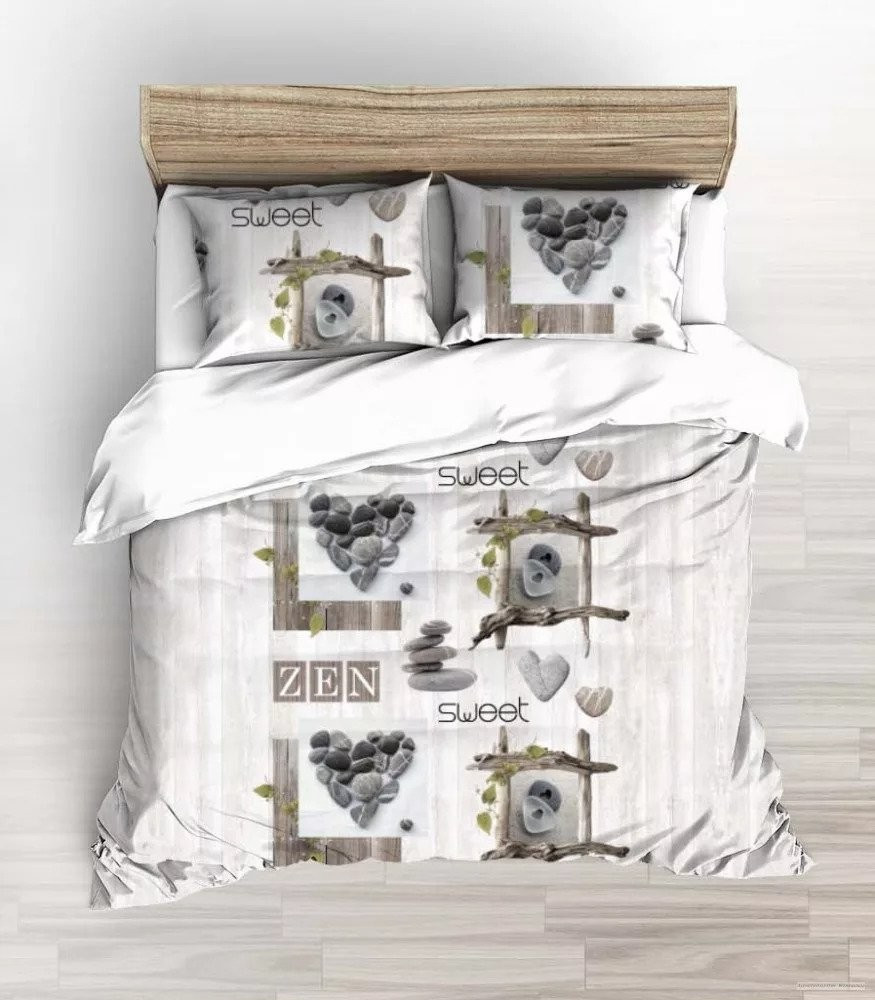 Pamut, 3 részes extra hosszú ágynemű huzat szett 140x220 cm zen mintával-köves szives.