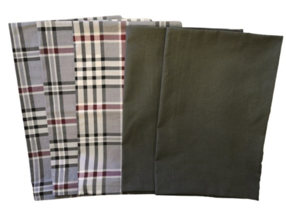 A csomag tartalma: 2db egyszínű szürke, 3 db szürke alapon kockás mintájú.