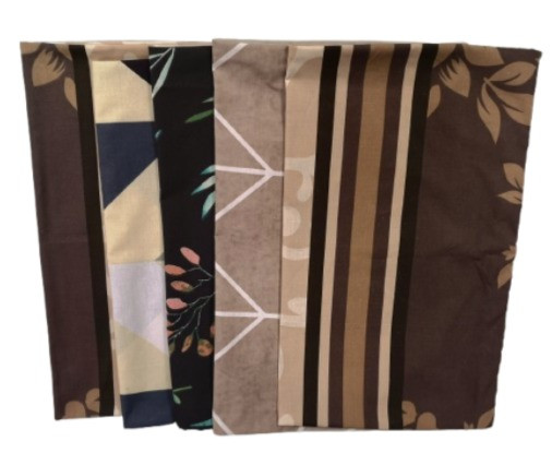 Csomag 5 db terméket tartalmaz.Barna, bézs, szürke, sárga színek, levél, virág, geometriai minták.