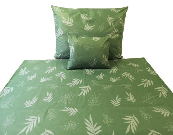 3 részes pamut ágynemű huzat szett - 140x200 cm / pasztell zöld levél mintás