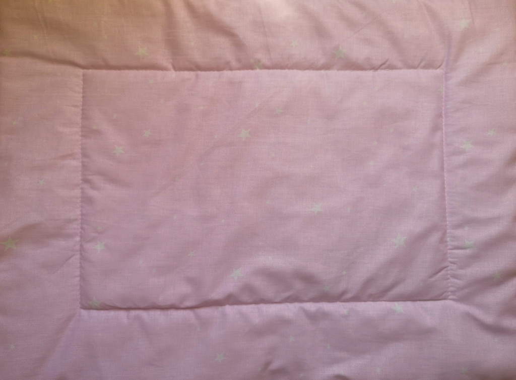 Kislányok részére tökélet választás lehet, ez a lapos - ovis kispárna, rózsaszín alapon- fehér apró csillag mintákkal.