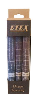 Férfi pamut zsebkendők barna - szürke - kék kockás mintával.