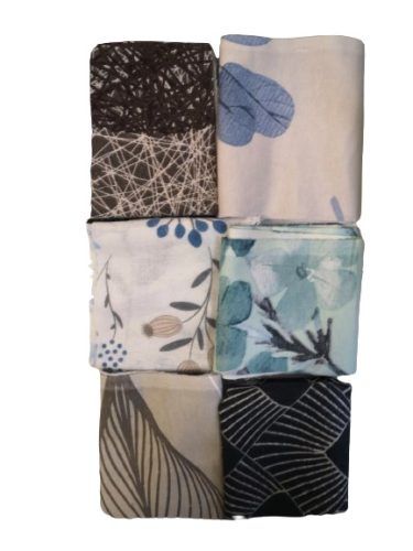 Textilek kb. 8-10 cm széles csíkokban, a fotón látható mintákkal.