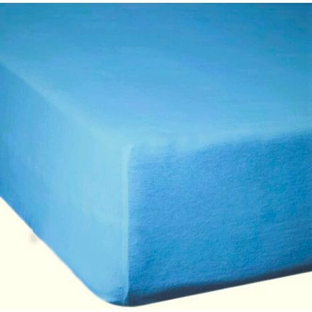 Égkék színű gumis pamutvászon lepedő 180x200 cm méretben, nagyobb kétszemélyes ágyra való.