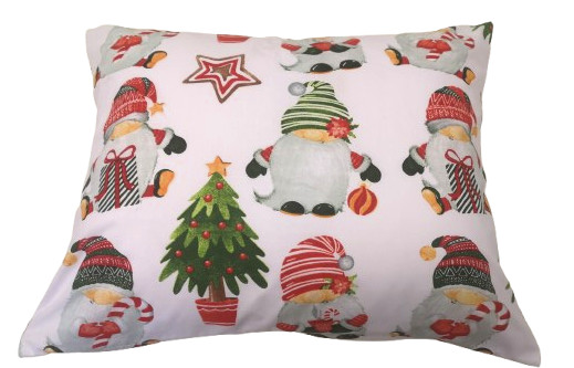 Karácsonyi pamut kispárna huzat -40x50 cm / piros - zöld sapkás manó