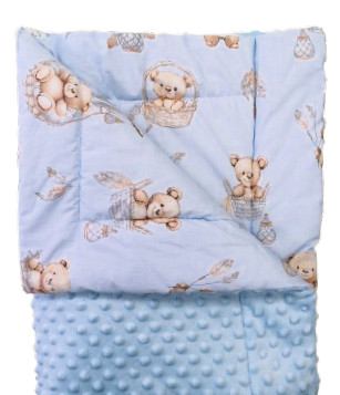 Bab kék aranyos maci mintás kétoldalas puha baba pléd 75x100 cm méretben.