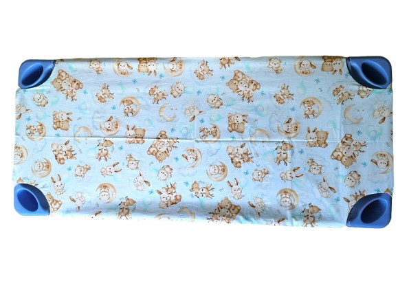 Kétrétegű gumifüles ovis lepedő világoskék cuki állatkölyök mintával