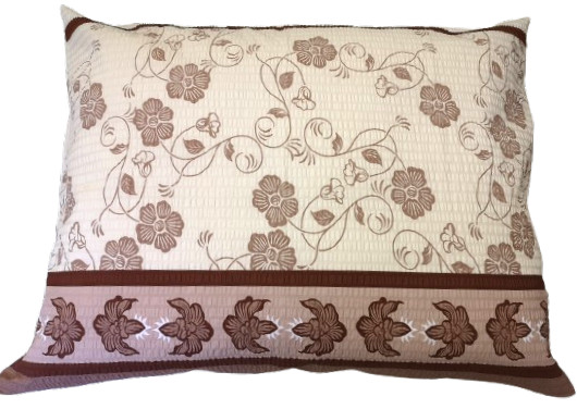 70x90 cm méretű krepp nagypárna huzat krém - barna virág mintás.