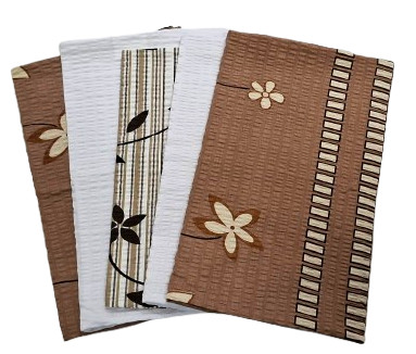 Csomag 3 db barna virág mintás és 2 db egyszínű fehér krepp kispárna huzatot tartalmaz.