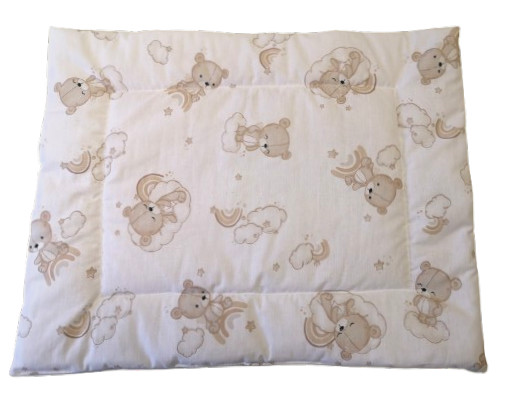 Fehér alapszínen aranyos maci - felhő mintás lapos ovis kispárna 100% pamut borítással.
