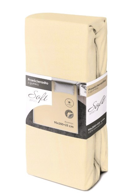 Krém színű jersey gumis lepedő - 90x200 + 25 cm