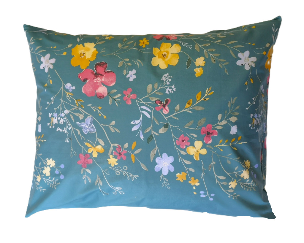 Zöld alapon virág mintás nagypárna huzat pamut alapanyagból.