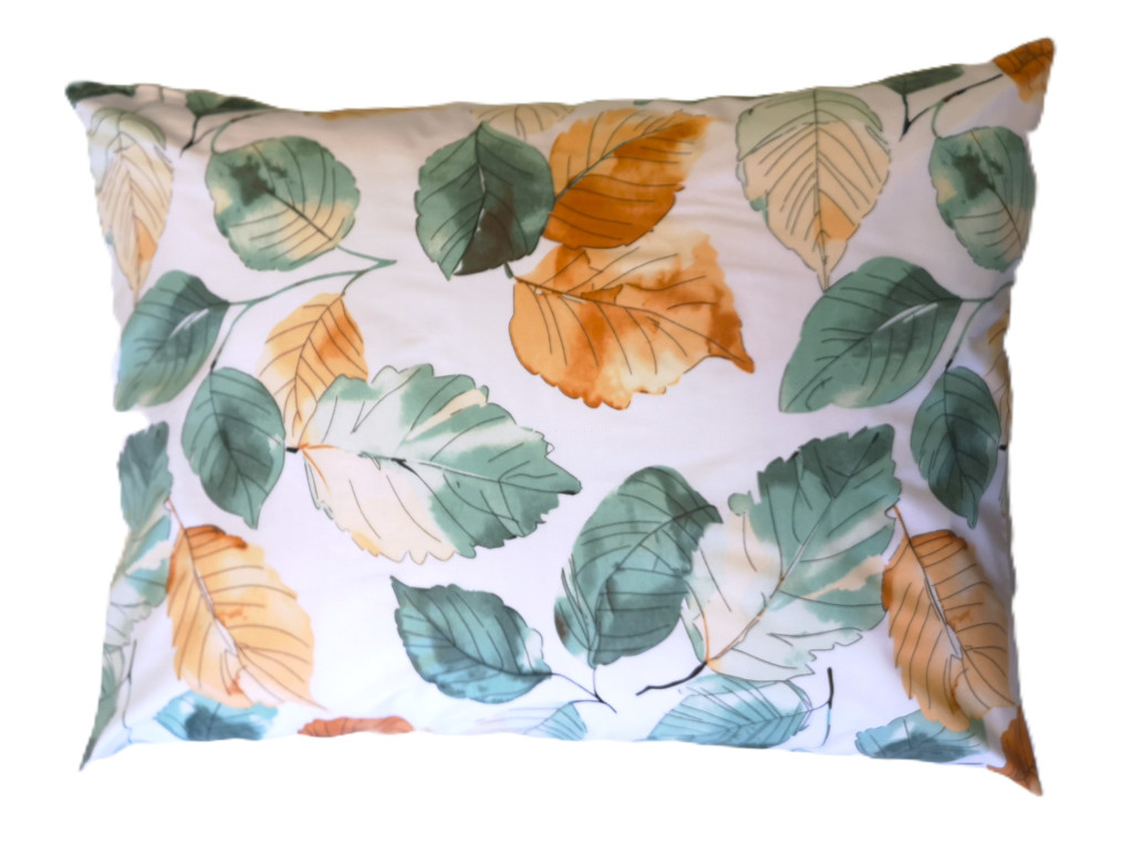 Tartós pamut anyagból készült, 70 x 90 cm méretű nagypárna huzat, fehér alapon őszi levél mintával.