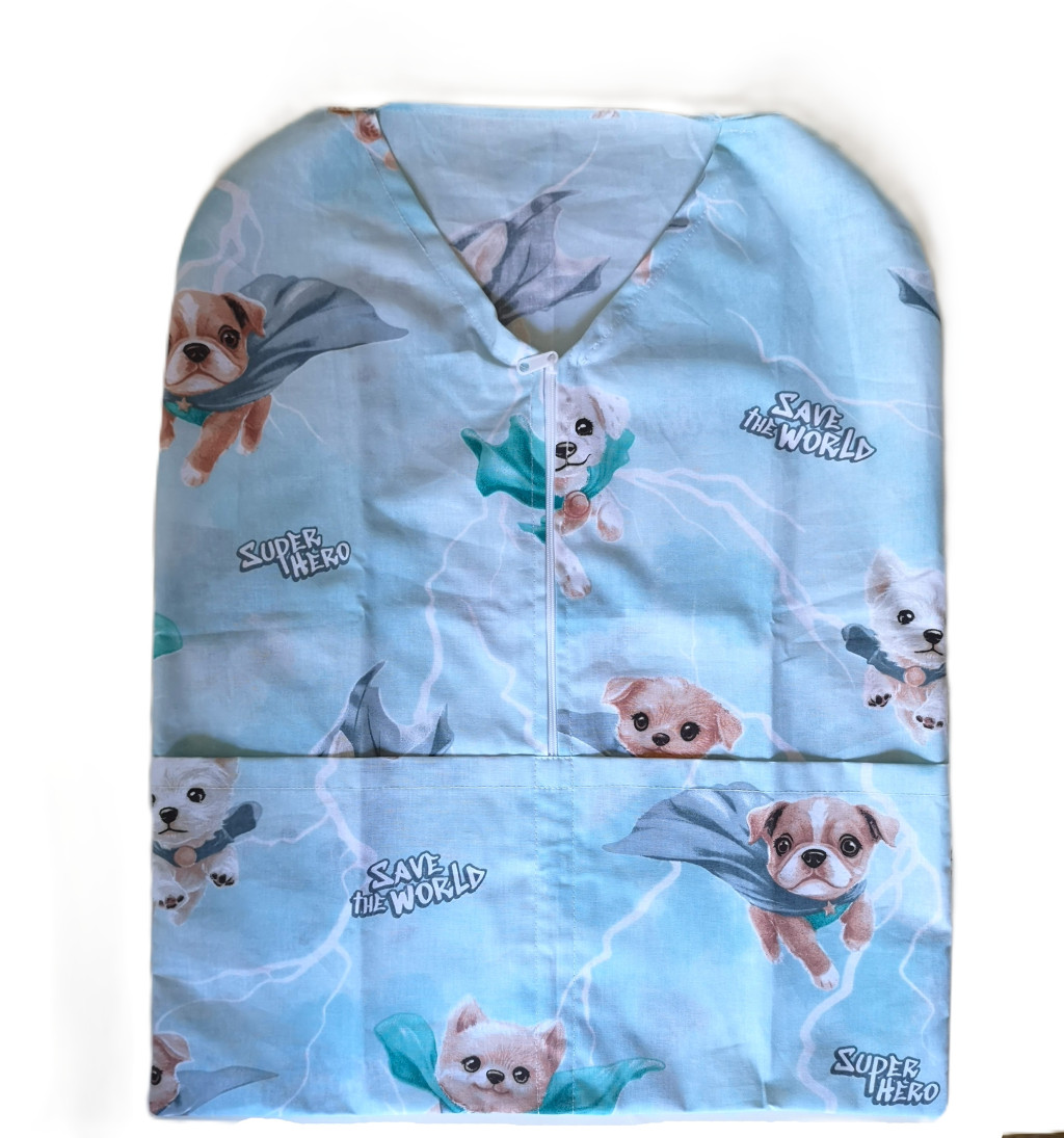 Super hero kutyus mintás pamut ovis vállfazsák.