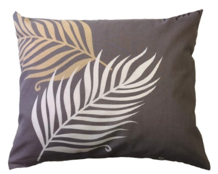 Szürke alapon pálma levél mintás pamut kispárna huzat.