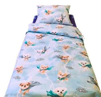 Vidám szuperhős kutyus mintás ágynemű huzat szett gyermekeknek.