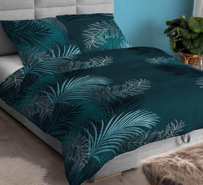 Szatén ágyneműhuzat petrol zöld pálmalevél mintás 3 részes - 140x200 cm