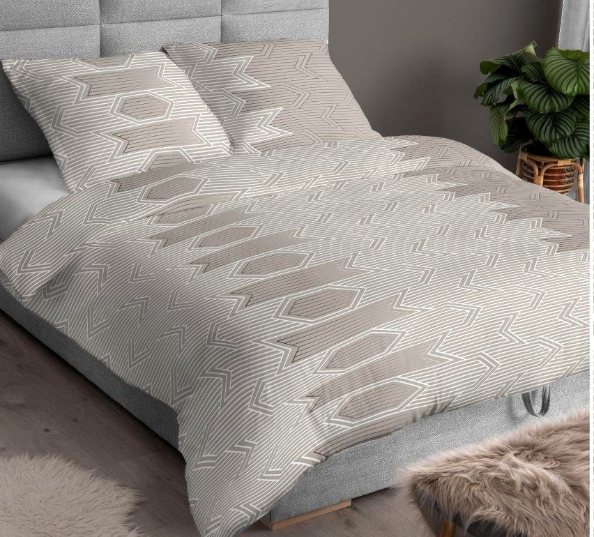 Pamutszatén 3 részes ágynemű huzat - 140x200 cm / bézs modern geometriai mintás
