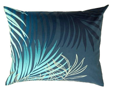 Pamutszatén kispárna huzat - 40x 50 cm / petrol zöld pálmalevél mintás