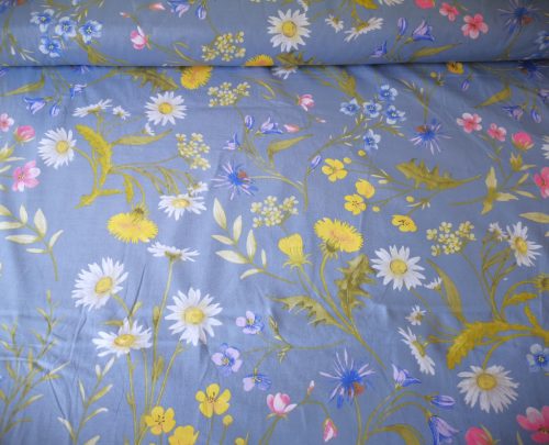Pamutvászon textil - 160 cm világos farmer alapon vegyes virágok