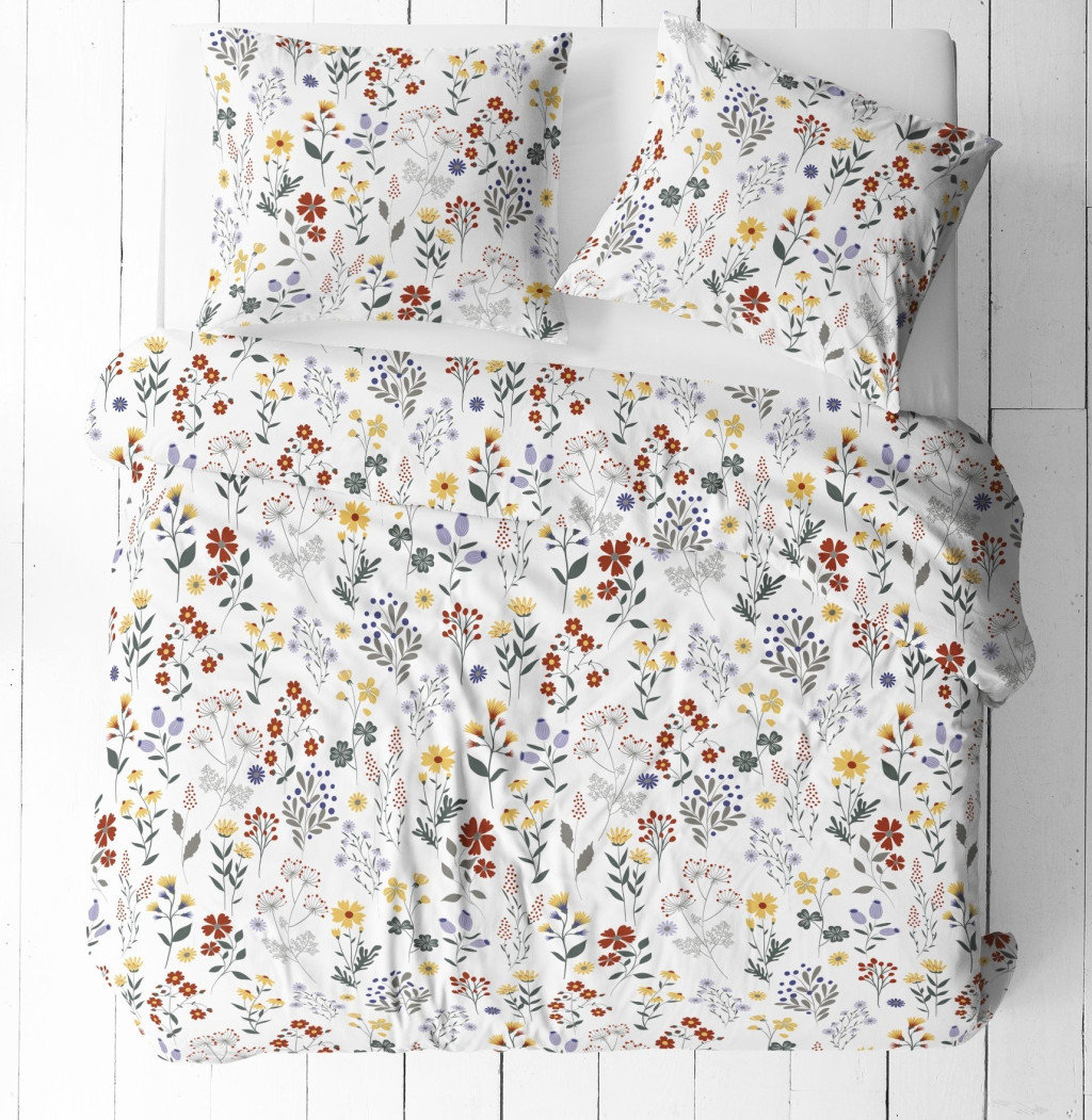 Krepp 3 részes ágynemű huzat - 140x200 cm piros-sárga mezei virágok mintás