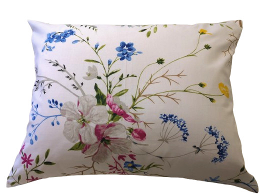 Pamut kispárna huzat fehér színű alapon színes mezei virág motívummal.