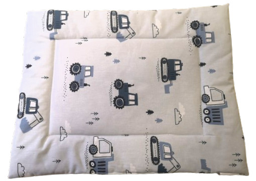 Lapos ovis kispárna igazán fiús kékes szürke munkagépes mintával.